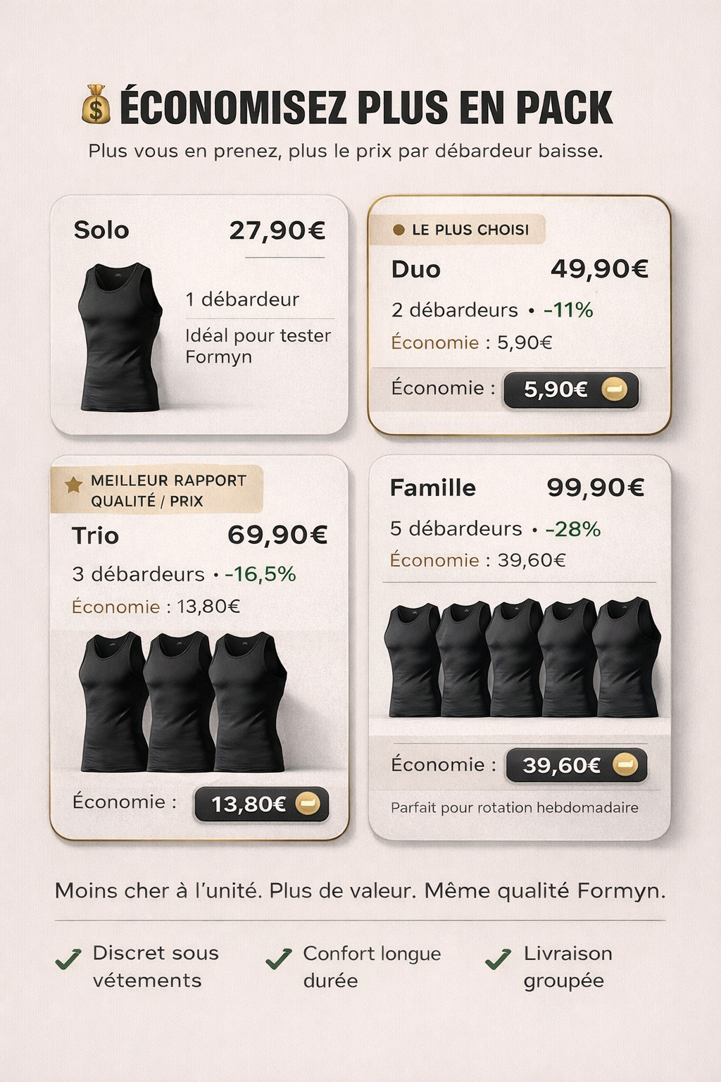 C’est exactement pour ça qu’on a créé Formyn : un débardeur discret, confortable et pensé pour redonner confiance en quelques secondes, sans effort.